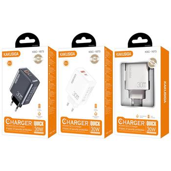 KSC-1673 большое зарядное устройство серии FUKE, быстрая стабильная Выходная вилка ЕС PD30W + QC3.0, большой огнестойкий ПК, новое зарядное устройство, продукт 2025